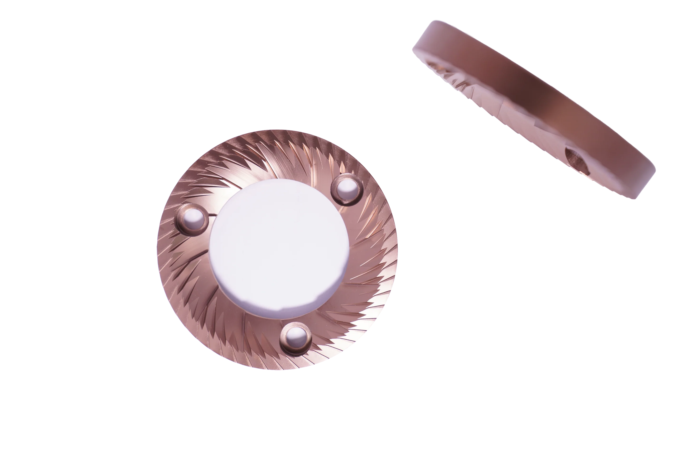 Our DF64 Gen 2 now comes equipped with Red Titanium burrs. These are stainless steel burrs coated with Aluminium Titanium Nitride, which improves heat tolerance and hardness, delivering greater consistency, uniform particle distribution, and enhanced durability compared to DLC coated and uncoated standard stainless steel burrs.